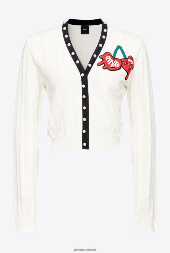 קרדיגן | Pinkomult. לבן/שחור/אדום קרדיגן קצוץ עם רקמת דובדבן 4J84TD544