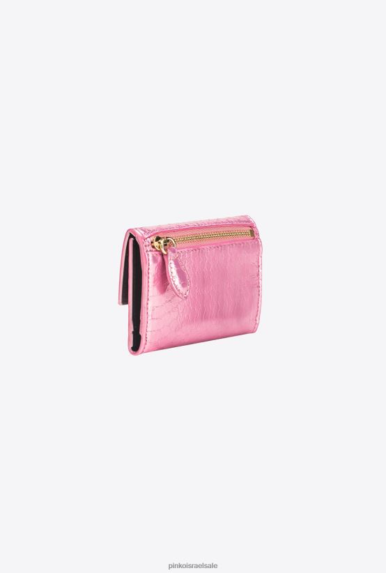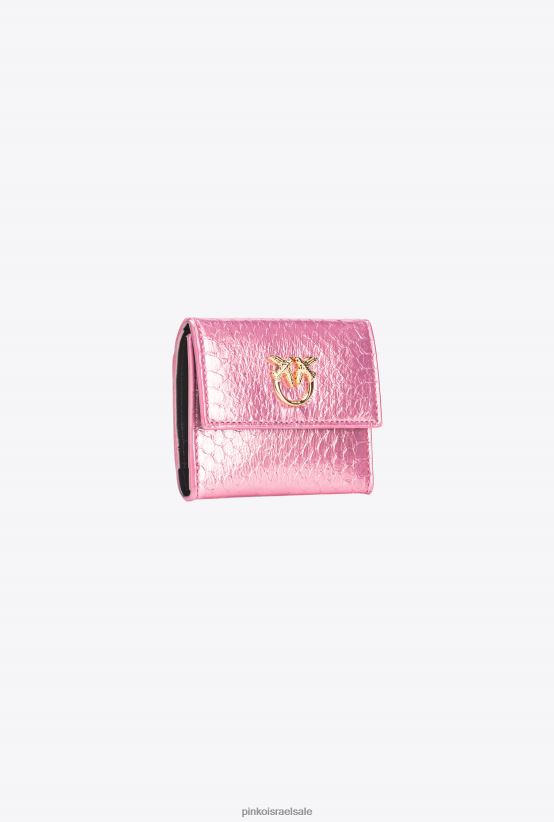 ארנק דק וקומפקטי מעור Ayers למינציה. העור האקזוטי המשובח הזה מתהדר בדפוס המזכיר קשמת פיתון. החומר מגולף באופן טבעי, ולכן, עשויים להיות פגמים מסוימים, אשר מוסיפים ערך בכל הנוגע לייחודיות. ההידוק הושלם על ידי לוחית חיתוך יהלום של ציפורי אהבה ממתכת. האביזר הוא חלק מקולקציית הקפסולה המיוחדת במהדורה מוגבלת הכוללת דגמים בלעדיים של Pinko Galleria במהדורה מוגבלת.