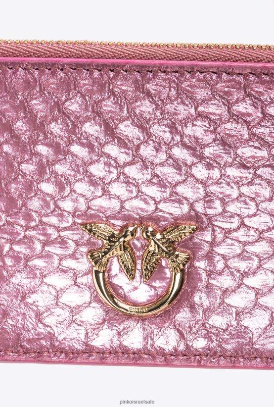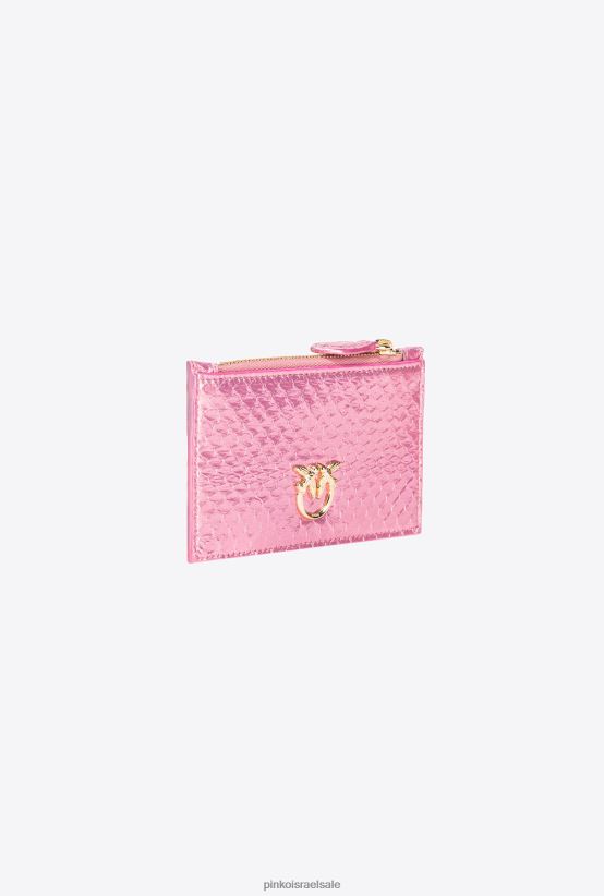 מחזיק כרטיס אשראי מעור Ayers למינציה. העור האקזוטי המשובח הזה מתהדר בדפוס המזכיר קשמת פיתון. החומר מגולף באופן טבעי, ולכן, עשויים להיות פגמים מסוימים, אשר מוסיפים ערך בכל הנוגע לייחודיות. מותאם אישית עם פרט לוח לוגו בחיתוך יהלום של ציפורי אהבה מתכת. הידוק רוכסן. האביזר הוא חלק מקולקציית הקפסולה המיוחדת במהדורה מוגבלת הכוללת דגמים בלעדיים של Pinko Galleria במהדורה מוגבלת.