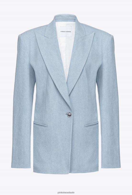 בלייזר ג'ינס מכותנה נוחה עם שטיפת אקונומיקה. חלק בגזרה ישרה עם דשי שיא, שרוולים ארוכים עם חפתים מכופתרים וכיסי רצועות בצדדים. בטנה פנימית מבד. חד חזה ומהודק בכפתור אחד. - הדגם בגובה 178 ס"מ ולובש מידה 40.