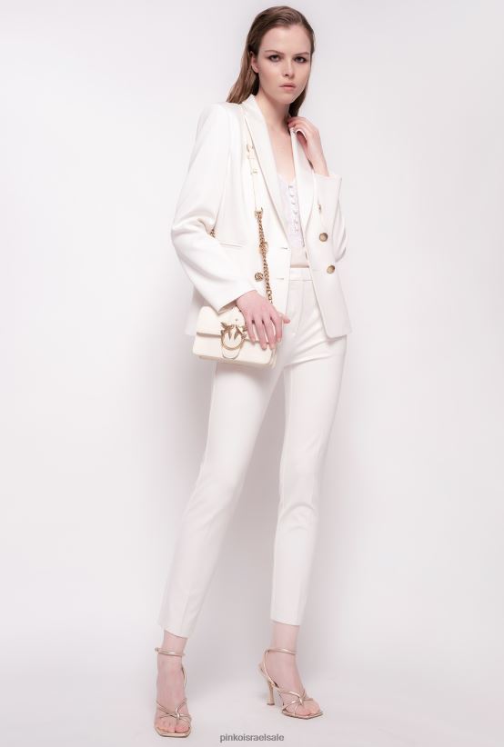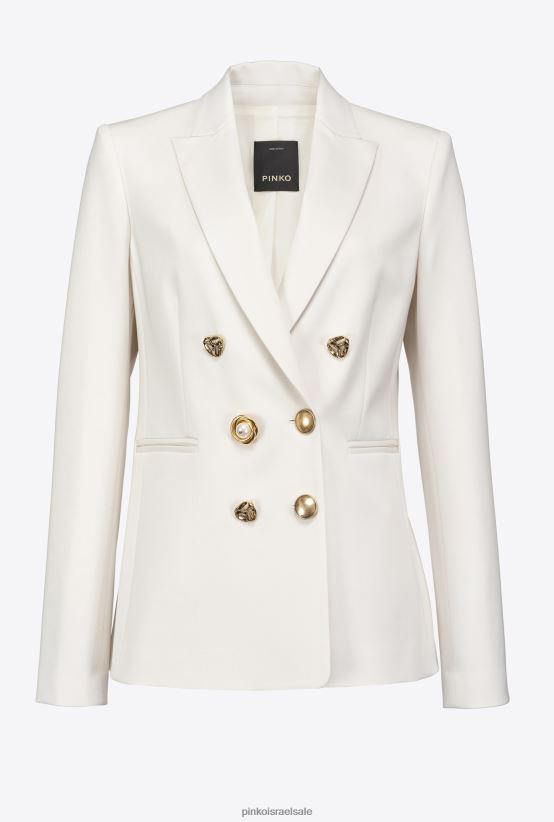 בלייזר מבד ויסקוזה סטרץ' טכני סריגת מילאנו מלאה, בגימור מיוחד באפקט סקובה. דשים וכיסי צד כפולים. הידוק כפול עם כפתורי תכשיטים שונים, כל אחד שונה מהאחר.