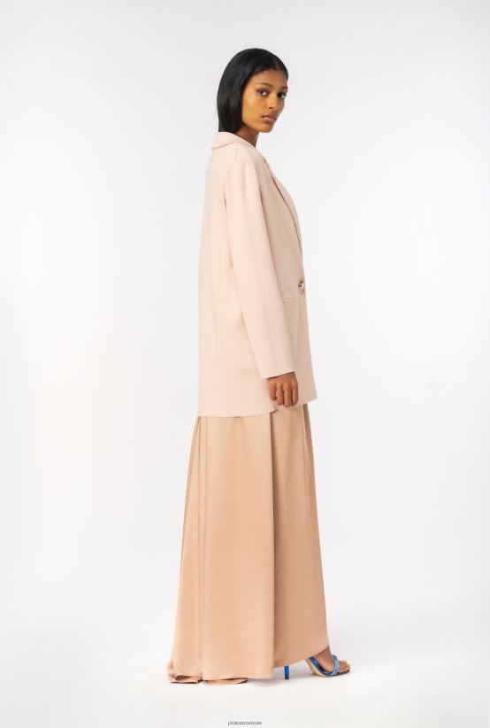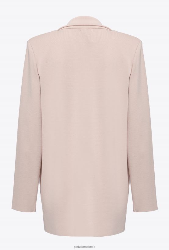 בלייזר קל אוברסייז מבד ויסקוזה בתפירת מילאנו טכנית. צווארון דש, כתפיים מובנות, שרוולים ארוכים וכיסי רצועות. הידוק כפול עם כפתורי מתכת.