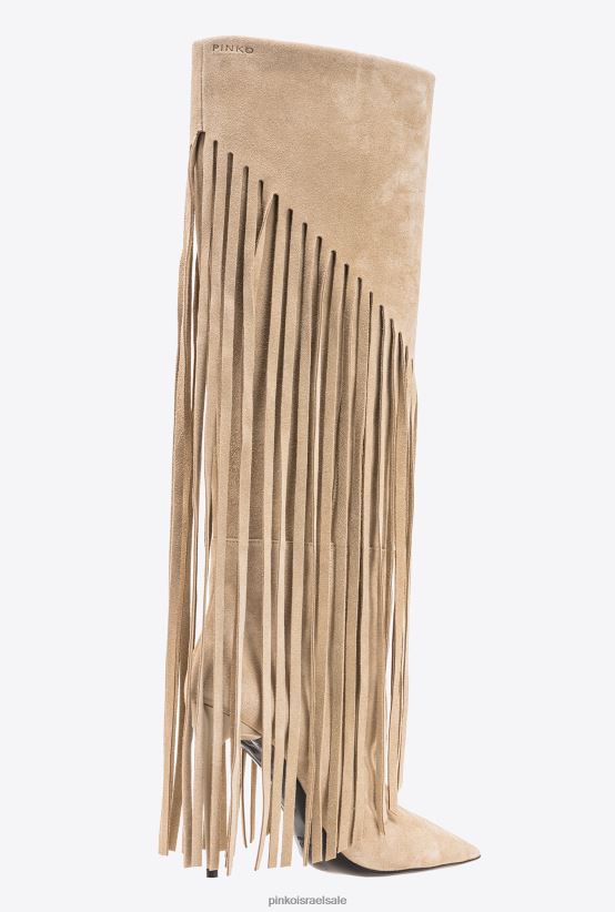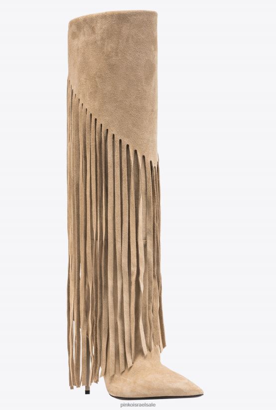 מגפיים | Pinkoחום בז'-בהיר מגפי זמש עם פרנזים 4J84TD1100