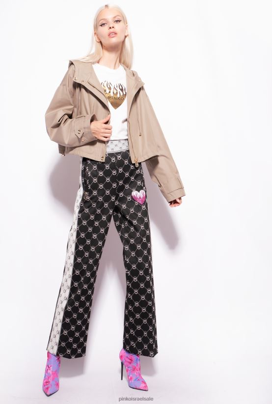 חולצת טי ג'רזי מכותנה עם שרוולים קצרים עם הדפס לבבות במראה מרופד עם לוגו פינקו. - הדגם בגובה 175 ס"מ ולובש מידה 40.