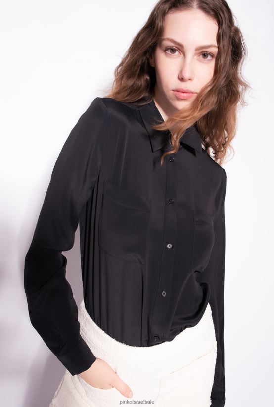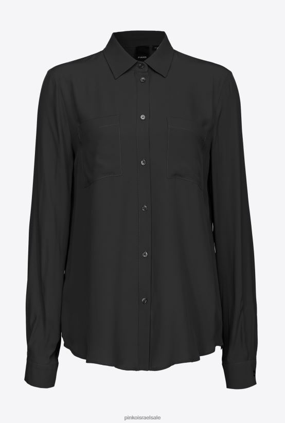 חולצות | Pinkoלימוזינה שחורה חולצה בתערובת משי עם כיס חזה 4J84TD302