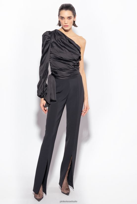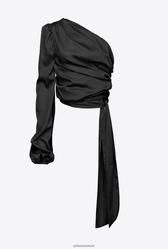 למעלה | Pinkoלימוזינה שחורה עליונית סאטן עם כתף אחת 4J84TD247