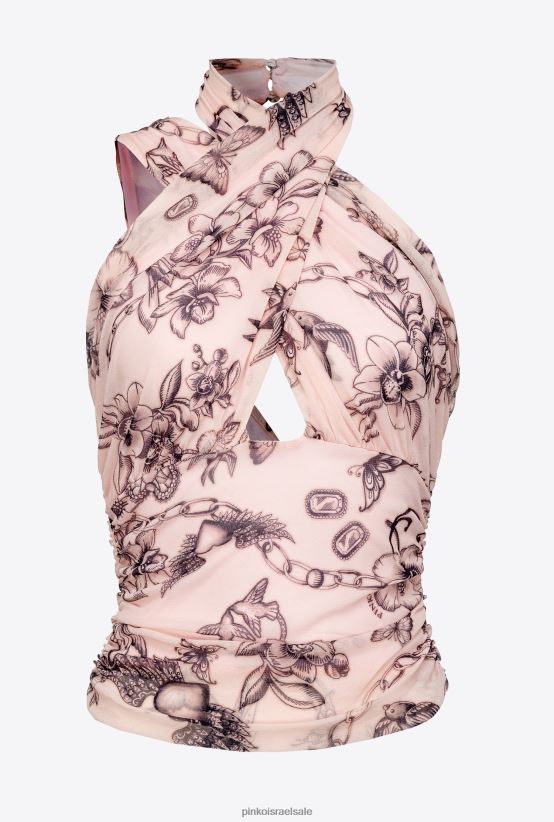 למעלה | Pinkoעירום/שחור חלק עליון אסימטרי עם הדפס קעקועים 4J84TD408
