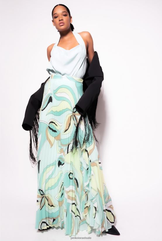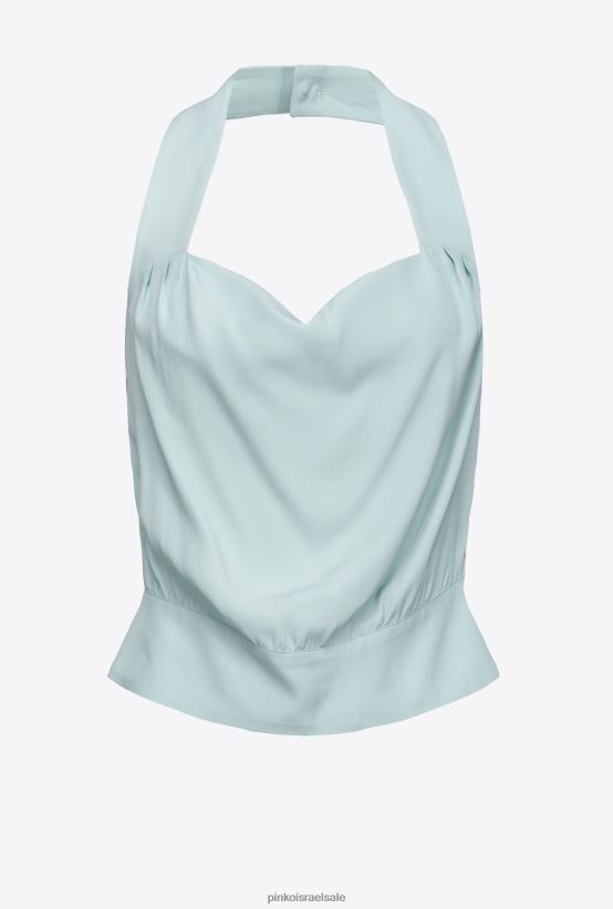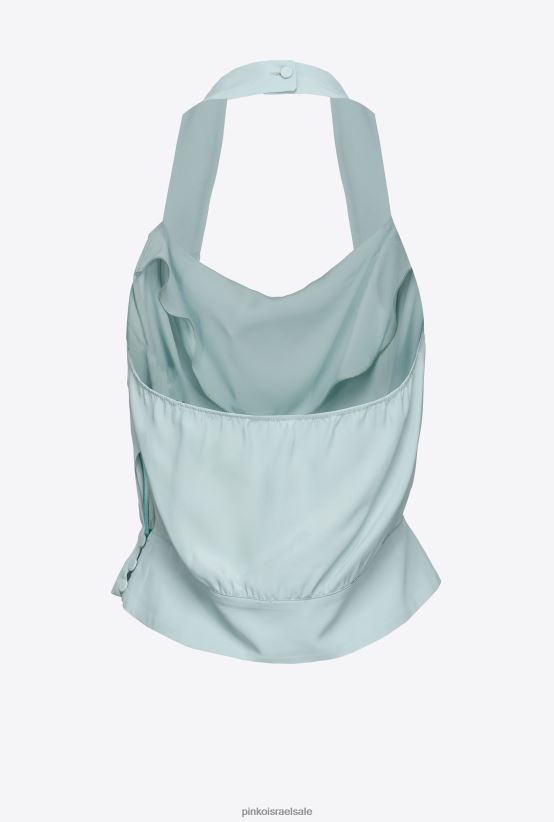 חלק עליון זורם ללא שרוולים בקרפ דה צ'ין בתערובת משי, עם צווארון כותנה המשאיר את הגב פתוח וסגירת כפתורים מאחור. מהדק עם כפתורים בטון על טון בצד. יצירה זו עשויה מחומר - מאושר לאורך שרשרת הייצור - מיערות המנוהלים בהתאם לעקרונות הקיימות. - הדגם בגובה 177 ס"מ ולובש מידה 40.