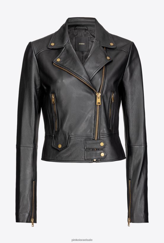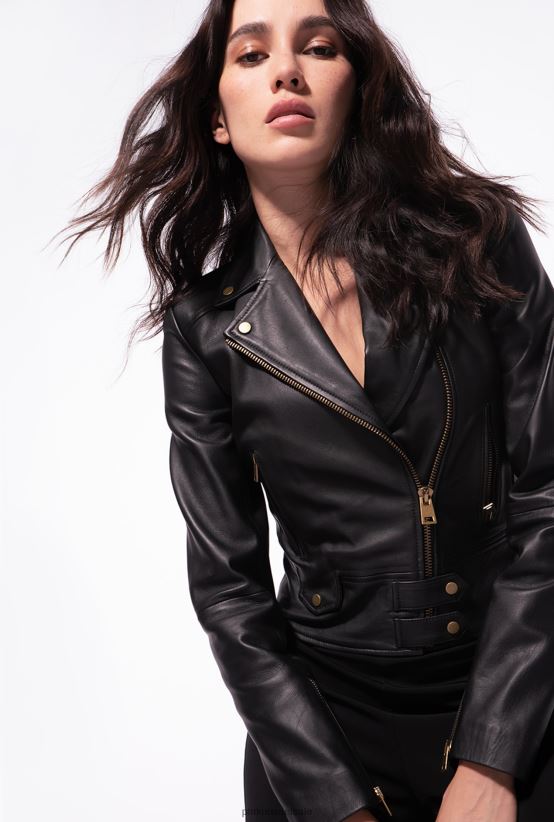 ז'קטים קז'ואל | Pinkoלימוזינה שחורה מעיל אופנוענים מעור נאפה 4J84TD841