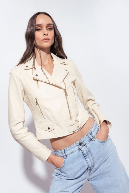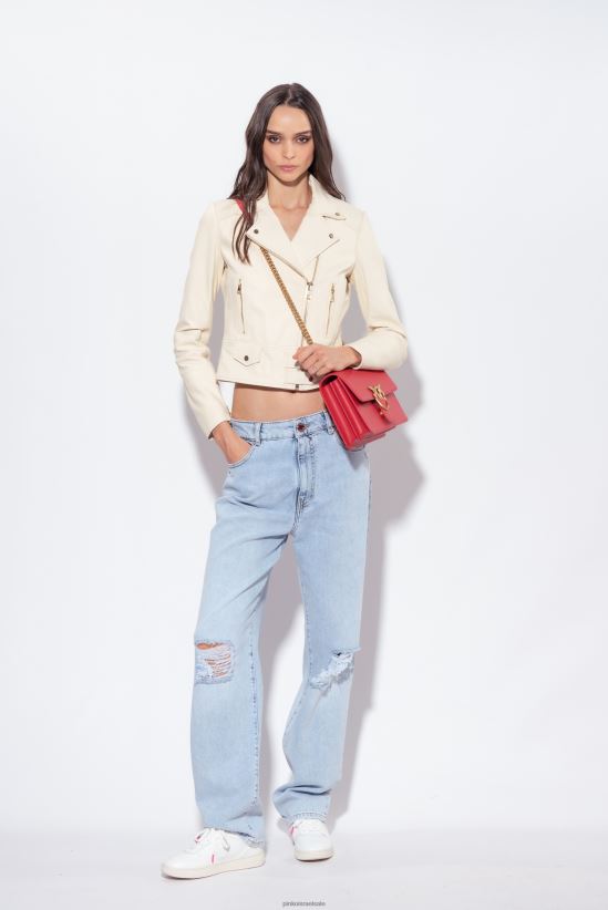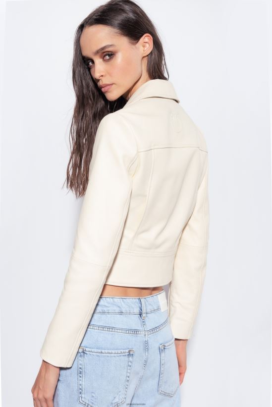 ראשי| הַלבָּשָׁה| ז'קטים| ז'קטים קז'ואל | Pinkoעשן ורוד לבן מעיל אופנוענים מעור נאפה 4J84TD832