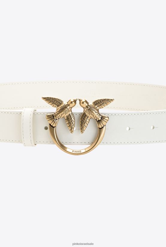 חגורה מעור רך ומשיי, עם אבזם מתכת בחיתוך יהלום של ציפורי אהבה.