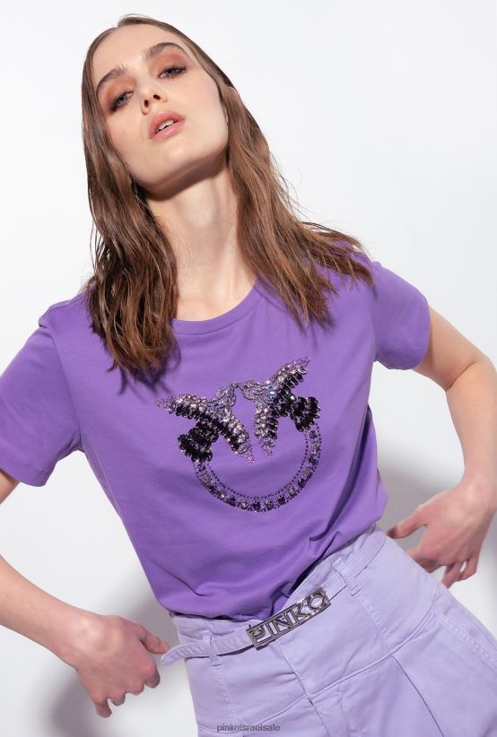 חולצה | Pinkoלבנדר לילך חולצת טריקו עם רקמת ציפורי אהבה 4J84TD350