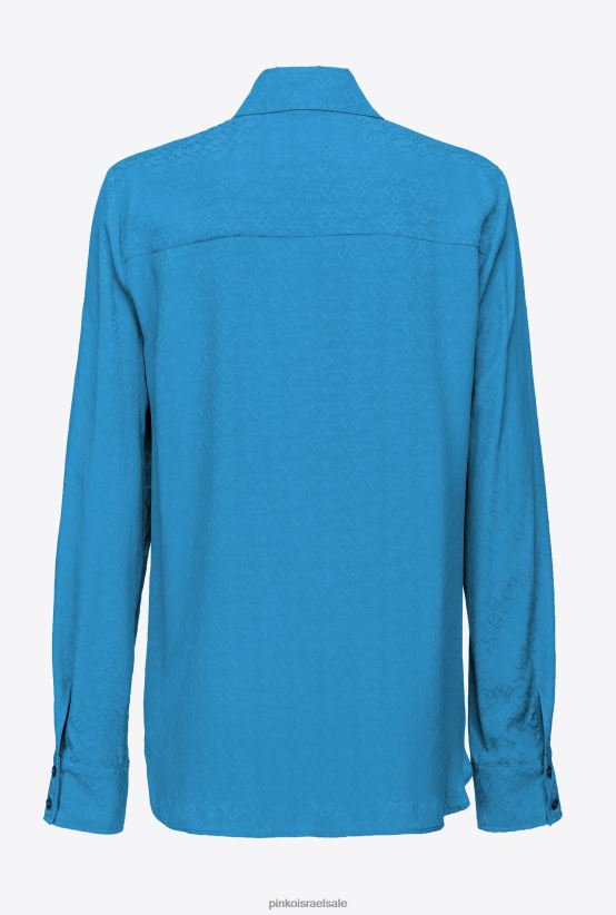 חולצה בקרפ דה צ'ין משי ארוג בג'קארד, עם מוטיב לוגו על כל הגוף. צווארון קלאסי ושרוולים רפויים ומלאים. הידוק כפתור קדמי.