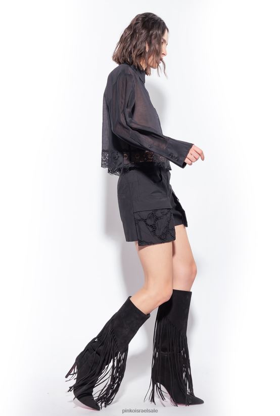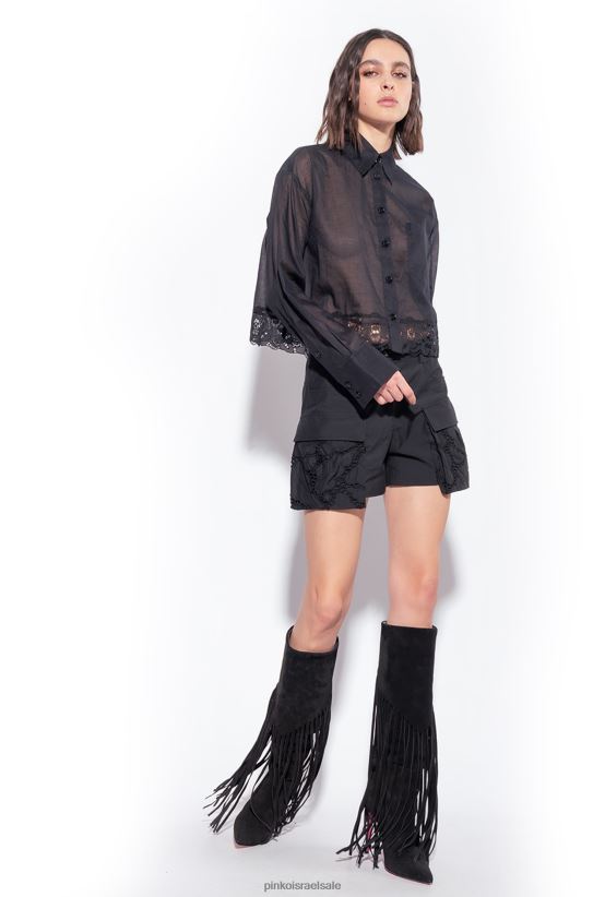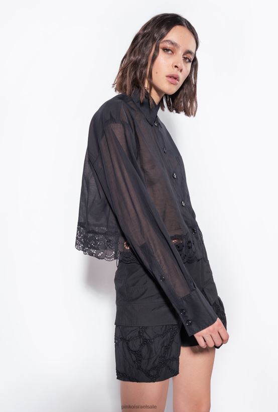 חולצות | Pinkoלימוזינה שחורה חולצת מוסלין קצרה 4J84TD292