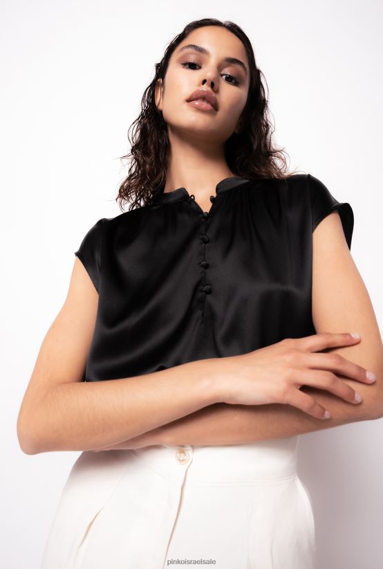 חולצות | Pinkoלימוזינה שחורה חולצת סאטן ללא שרוולים 4J84TD304