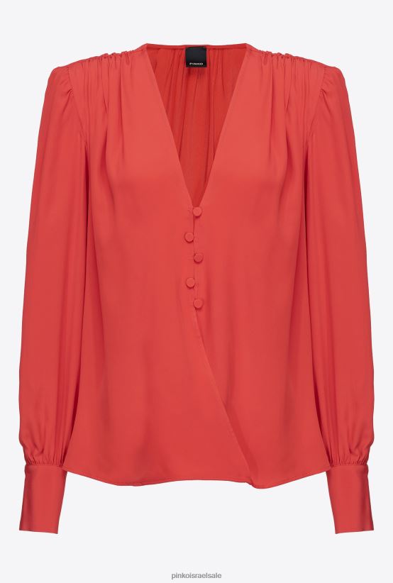 חולצה מרופדת מבד קרפ דה צ'ין בתערובת משי. צווארון V צונח, כתפיים מובנות ושרוולים ארוכים מעוטרים בשרוולים. הידוק קדמי מוצלב עם כפתורים תואמים קטנים. - הדגם בגובה 176 ס"מ ולובש מידה 40.