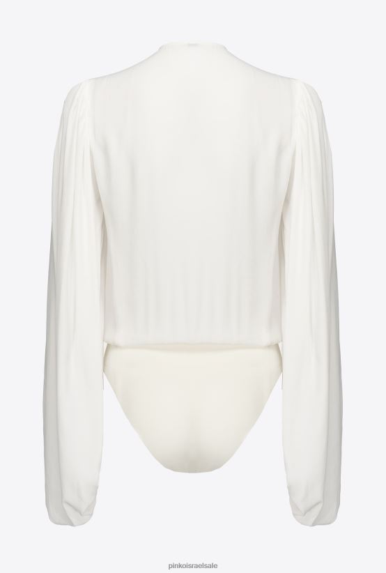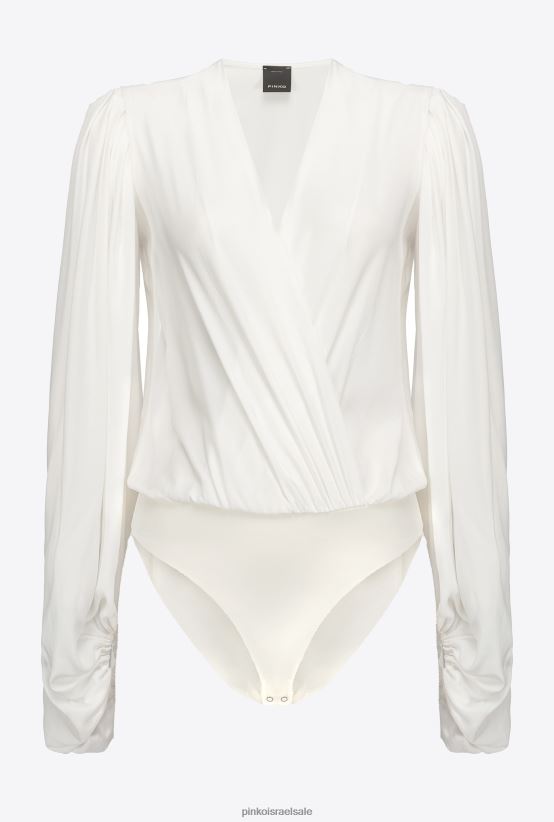 בגד גוף עם שרוולים ארוכים בקרפ דה צ'ין בתערובת משי עם צווארון V מלפנים צונח בחזית.