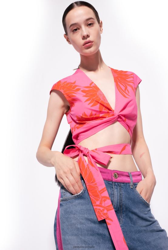 למעלה | Pinkoורוד/אדום חלק עליון עם אבנט ופרחים מודפסים גדולים 4J84TD371
