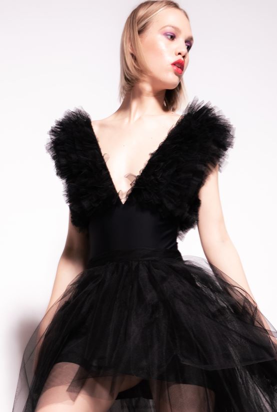 למעלה | Pinkoלימוזינה שחורה בגד גוף עם רצועות טול 4J84TD437