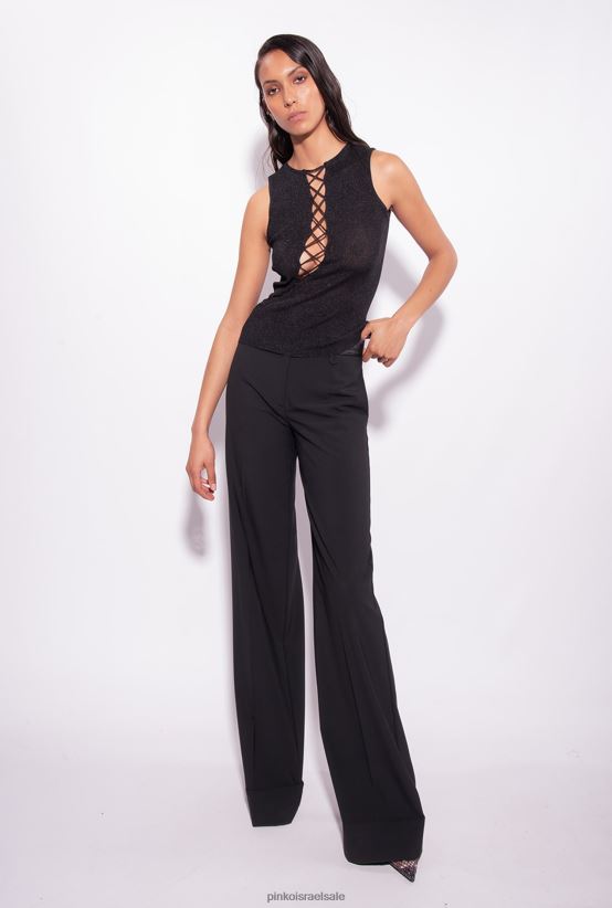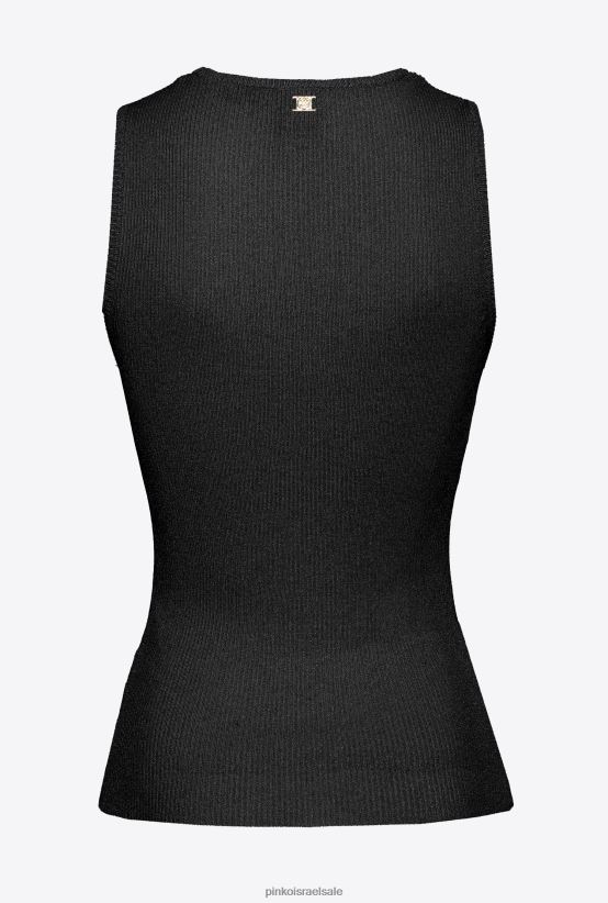 למעלה | Pinkoלימוזינה שחורה חלק עליון בסריג צלעות לורקס עם דיטיילים מוצלבים 4J84TD457