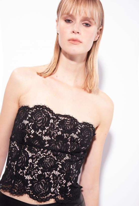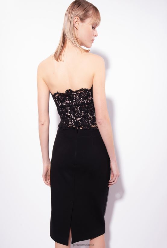 למעלה | Pinkoלימוזינה שחורה חלק עליון עם חזה תחרה 4J84TD434