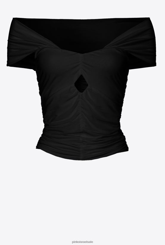 למעלה | Pinkoלימוזינה שחורה טופ ג'רסי נוזלי מחוץ לכתף 4J84TD348