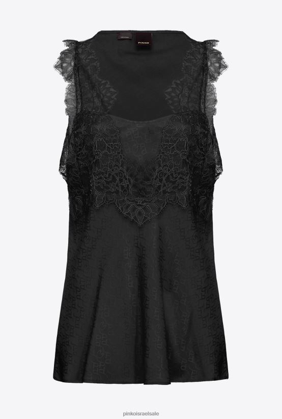למעלה | Pinkoלימוזינה שחורה עליונית לוגו ג'קארד עם תחרה 4J84TD328