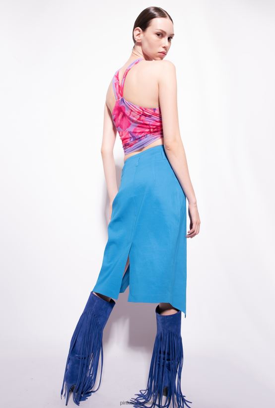 חצאיות באורך אמצע השוק | Pinkoבמאי כחול חצאית פשתן באורך העגל 4J84TD804