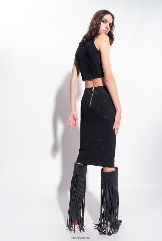 חצאיות באורך אמצע השוק | Pinkoלימוזינה שחורה חצאית ג'קארד ציפורי אהבה 4J84TD826