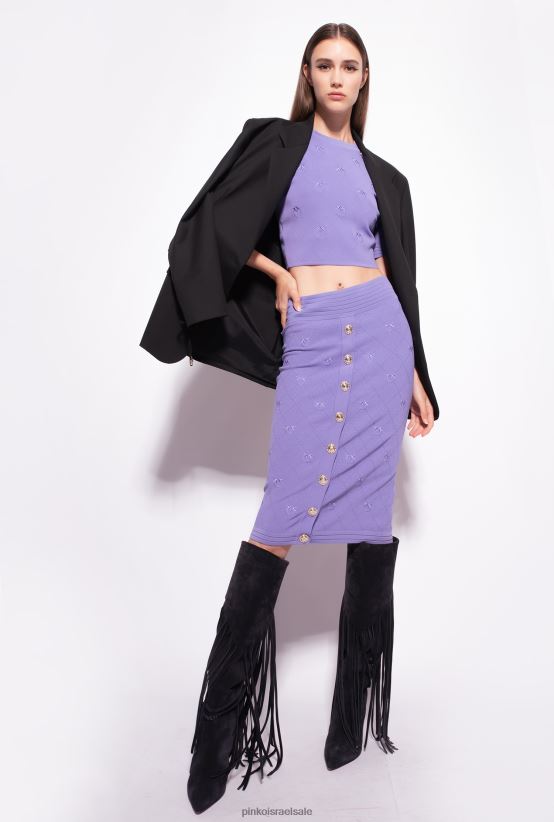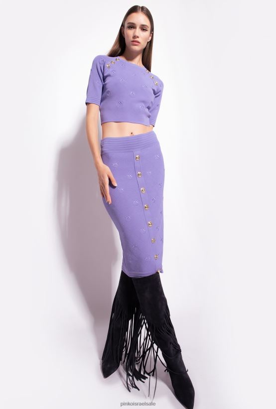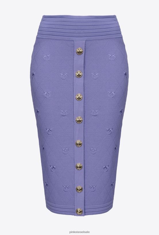 חצאית מידי מבד ג'קארד סרוג פיקה, עם לוגו של ציפורי אהבה רקום על כל הגוף. צמוד עם רצועת מותן אלסטית ושורת כפתורים מוזהבים בחזית. הידוק רוכסן מתכת באמצע מאחור ומשיכה בהתאמה אישית עם לוגו ציפורי אהבה. - הדגם בגובה 177 ס"מ ולובש מידה 40.