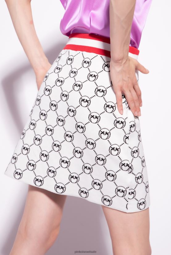 חצאיות מיני | Pinkomult. לבן/שחור/אדום חצאית מיני ג'קארד מונוגרמה 4J84TD829