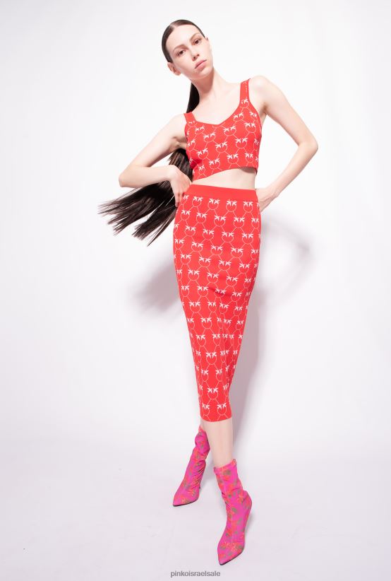 חצאיות באורך אמצע השוק | Pinkoאדום/ורוד חצאית ג'קארד מונוגרמה באורך העגל 4J84TD825