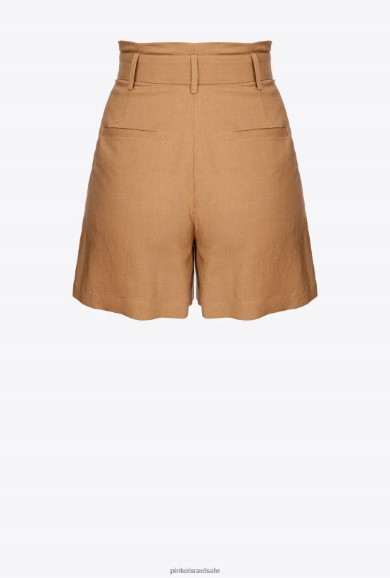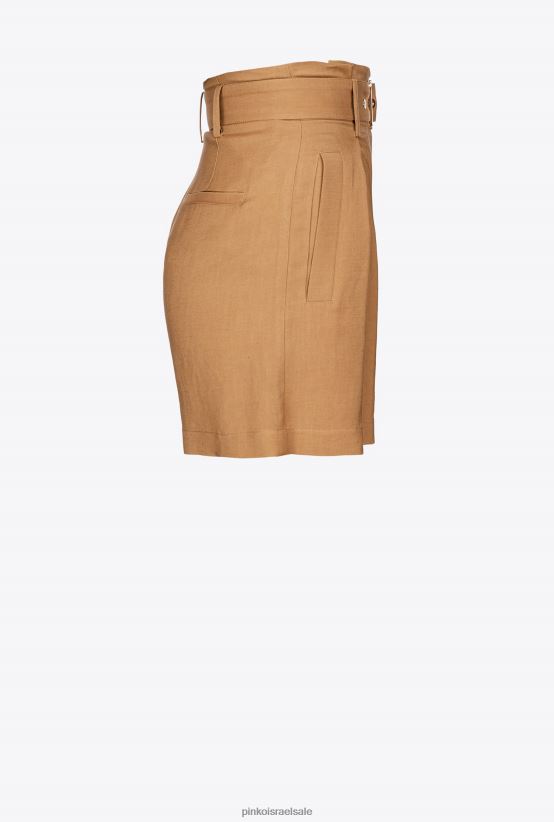 מכנסיים קצרים | Pinkoחרדל מכנסי פשתן קצרים עם חגורה 4J84TD687