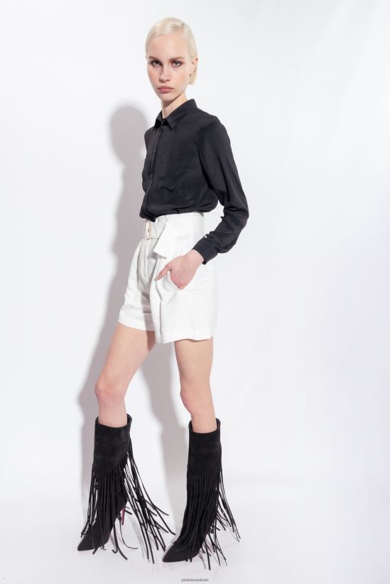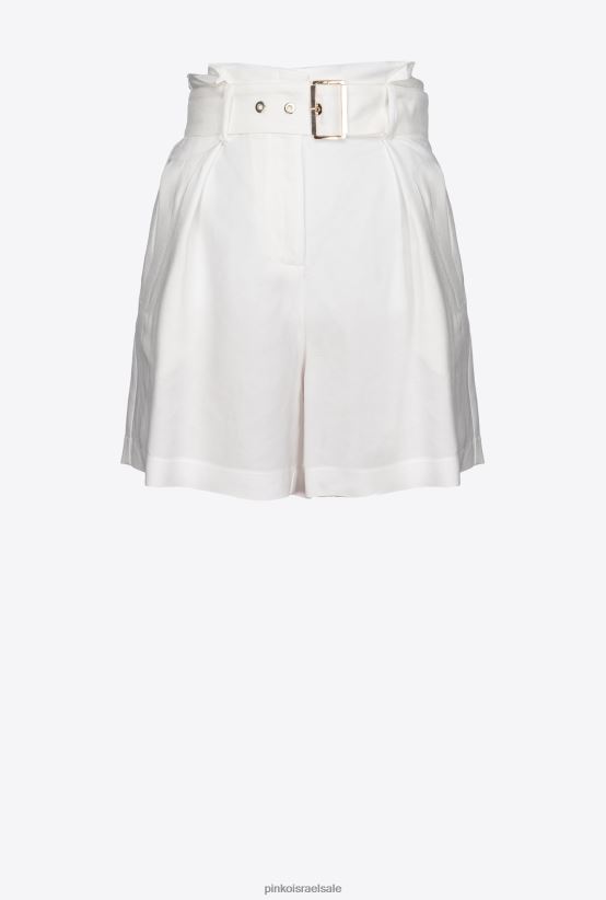 מכנסיים קצרים | Pinkoמשי לבן מכנסי פשתן קצרים עם חגורה 4J84TD686
