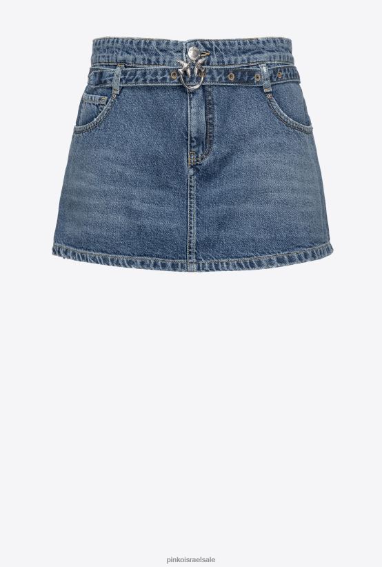 מכנסי ג'ינס וינטג' עם חמישה כיסים. מותן נמוך עם לולאות חגורה וחגורת בד דק תואם עם אבזם מיני מתכת של ציפורי אהבה. הידוק רוכסן וכפתורים. - הדגם בגובה 178 ס"מ ולובש מידה 40.