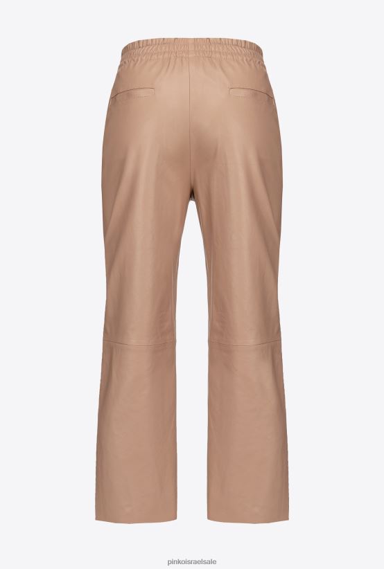 מכנסיים ישרים ורגועים מעור קל משקל במיוחד עם מותניים אלסטיות גבוהות, כיסים אנכיים בצדדים וכיסי רצועות בגב. בטנת כותנה טהורה.