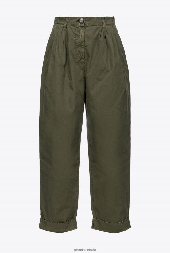 מכנסיים קז'ואל | Pinkoירוק רובה מכנסי מוסלין מכותנה 4J84TD707