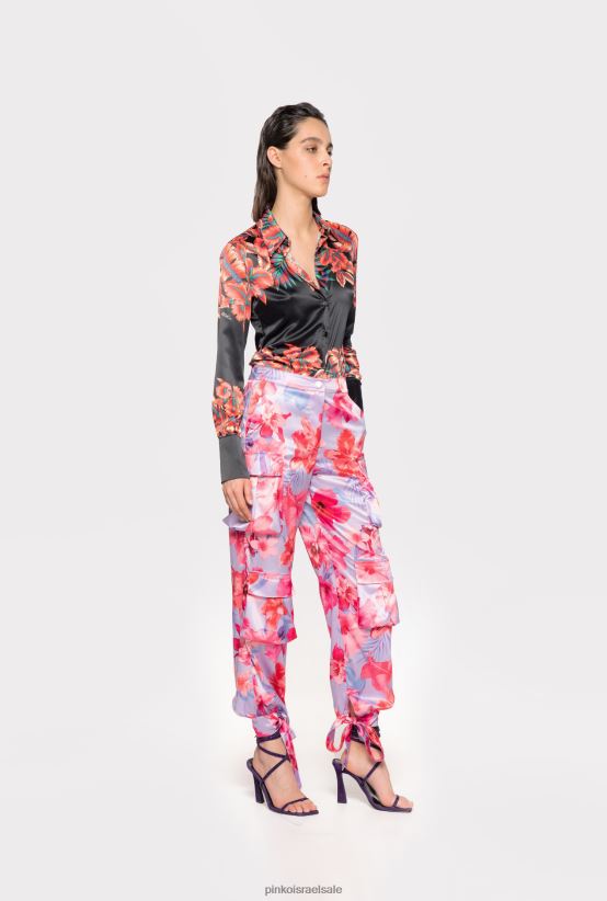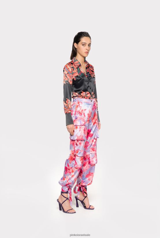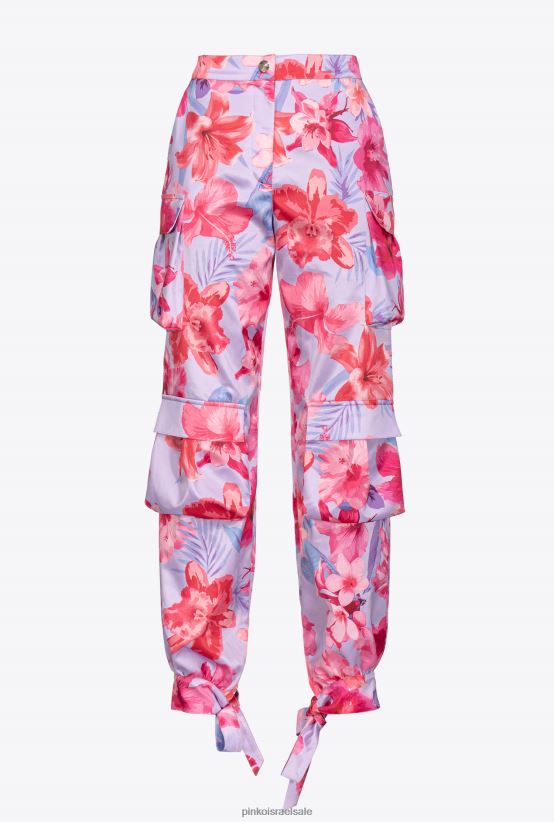 מכנסיים קז'ואל | Pinkoלילך/ורוד בהיר/פוקסיה מכנסי מטען סאטן עם הדפס פרחוני טרופי 4J84TD645