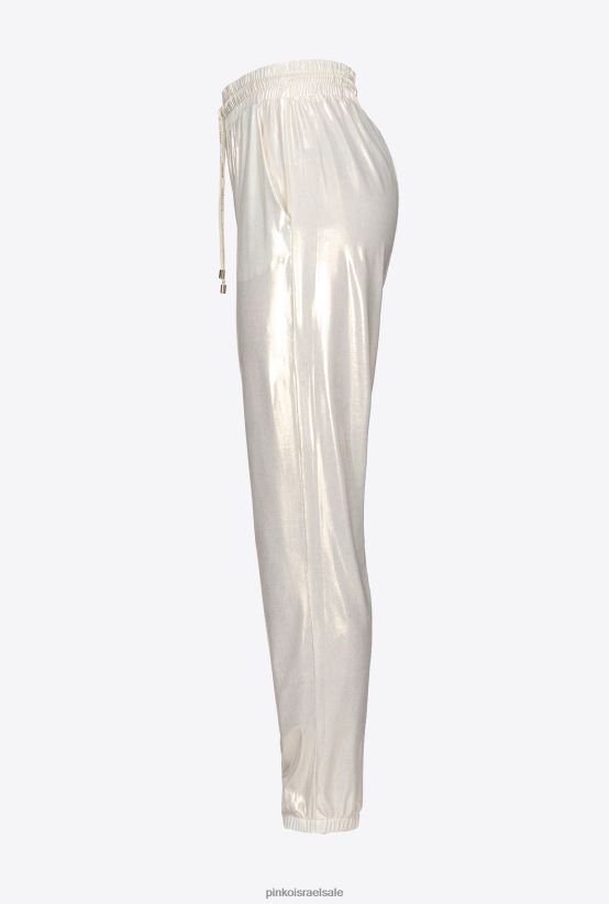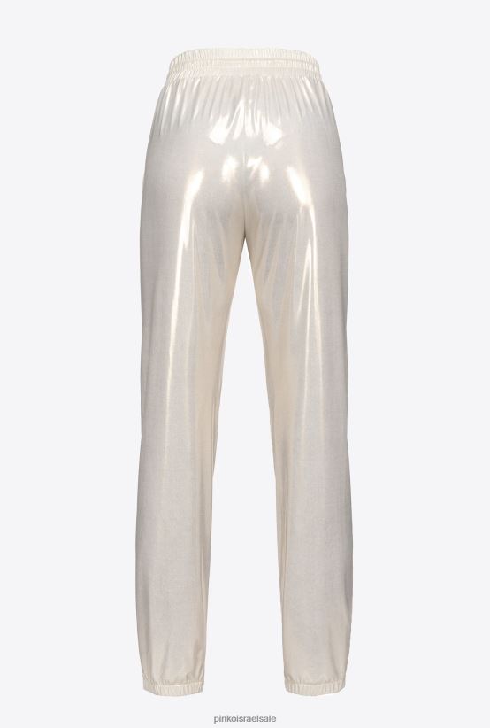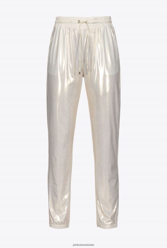ג'וגרים מבד Interlock טכני עם אפקט מתכתי מיוחד. כיסי צד, מותן אלסטית עם קצה מתכת, שרוך ממותג לוגו וחפת אלסטי בתחתית הרגליים. - הדגם בגובה 175 ס"מ ולובש מידה 40.