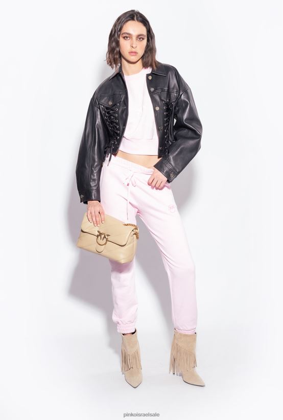 נעלי צמר כותנה עם הדפס מיני לוגו של ציפורי האהבה, בשכבות על ידי כיתוב פינקו. מותן שרוך אלסטי, כיסים קדמיים מלוכסנים ושולי קרסול אלסטיות. - הדגם בגובה 175 ס"מ ולובש מידה 40.