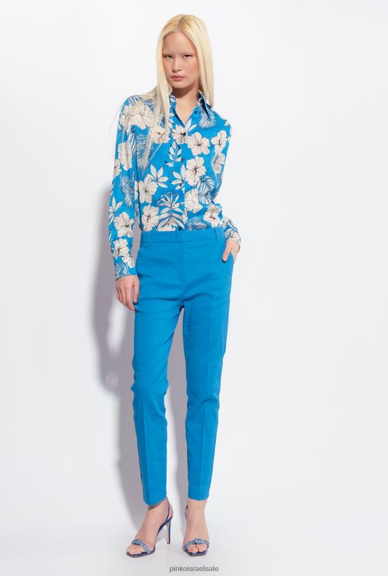מכנסיים קז'ואל | Pinkoבמאי כחול מכנסי סיגריות מתיחה מפשתן 4J84TD693