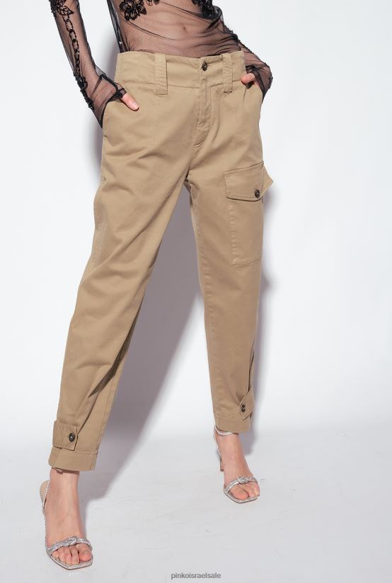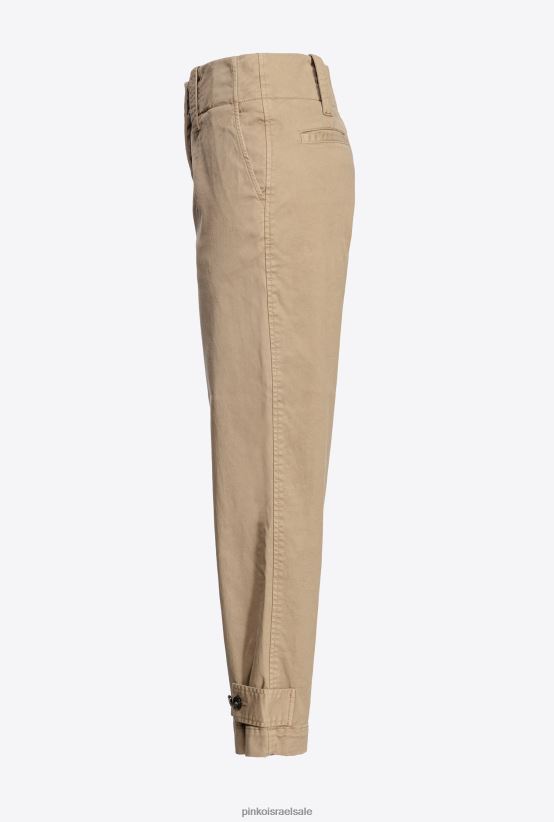 מכנסי מטען מבד גבארדין כותנה נמתחת צבועה בבגד. מותניים רגילים, לולאות חגורת מקסי, כיסים קדמיים מלוכסנים, כיסים אחוריים רצועות וכיסים בסגנון מקסי בצדדים. הרגל הרגועה כוללת פירוט חפת מכופתרת בשוליים. הידוק רוכסן וכפתורים. - הדגם בגובה 178 ס"מ ולובש מידה 40.