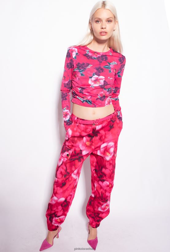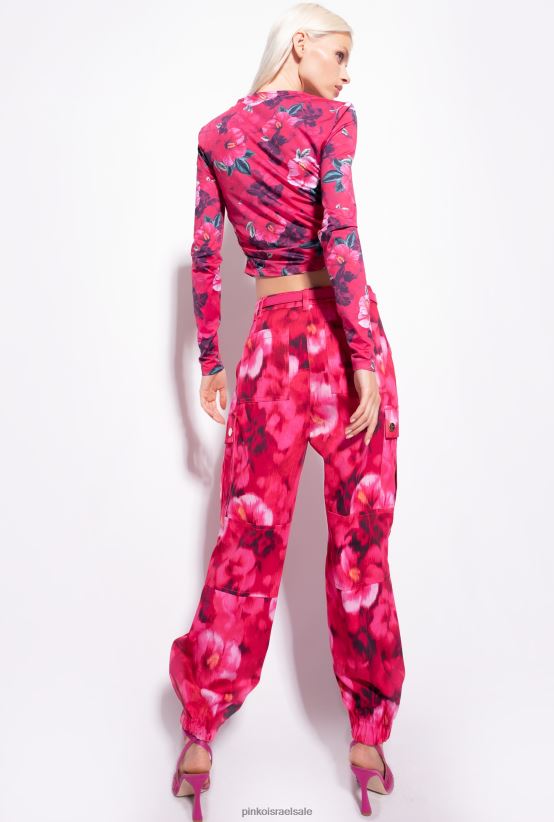 מכנסי כותנה עם הדפס פרחוני היביסקוס בולט עם אפקט דהייה. מותן גבוה, לולאות חגורה, כיסים קדמיים מלוכסנים, כיסי צד גדולים בסגנון שימוש וכיסי תיקון מאחור. להשלים עם תפירה על הברך ושולי רגל אלסטיות. הידוק רוכסן וכפתורים. - הדגם בגובה 175 ס"מ ולובש מידה 40.