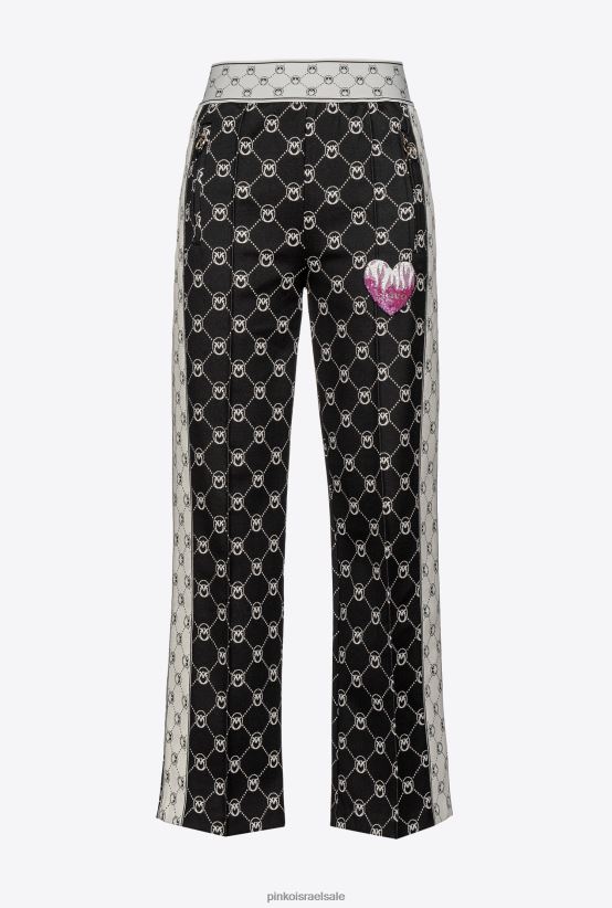 מכנסיים קז'ואל | Pinkoשחור/ אקרו מכנסי ג'קארד סרוגים במונוגרמה 4J84TD773