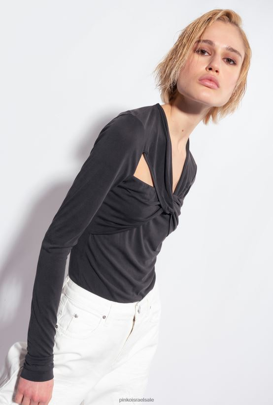 מגשרים | Pinkoלימוזינה שחורה חלק עליון עם שרוולים ארוכים עם פרטי קרוסאובר 4J84TD545