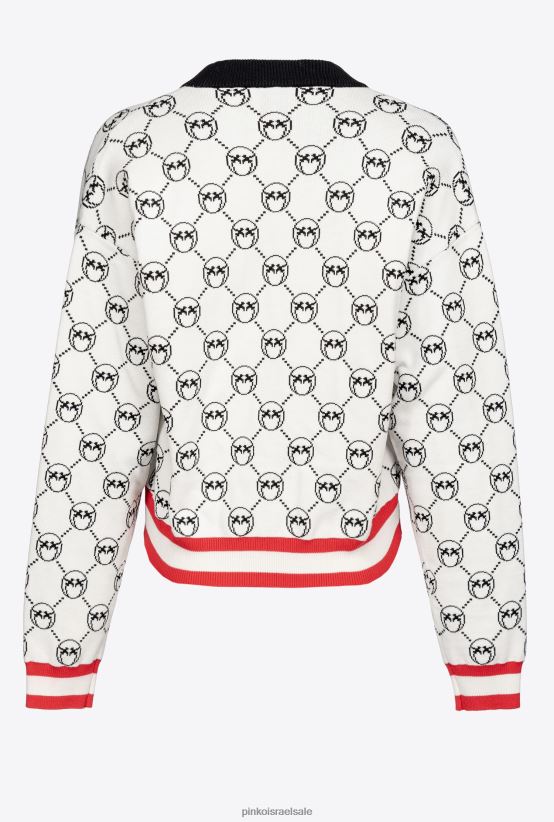 קרדיגן | Pinkomult. לבן/שחור/אדום קרדיגן ג'קארד מונוגרם עם רקמת דובדבן 4J84TD531
