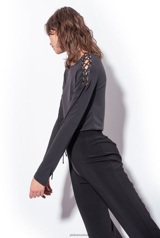 סוודרים | Pinkoלימוזינה שחורה חלק עליון עם שרוך על הכתפיים 4J84TD474