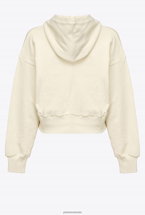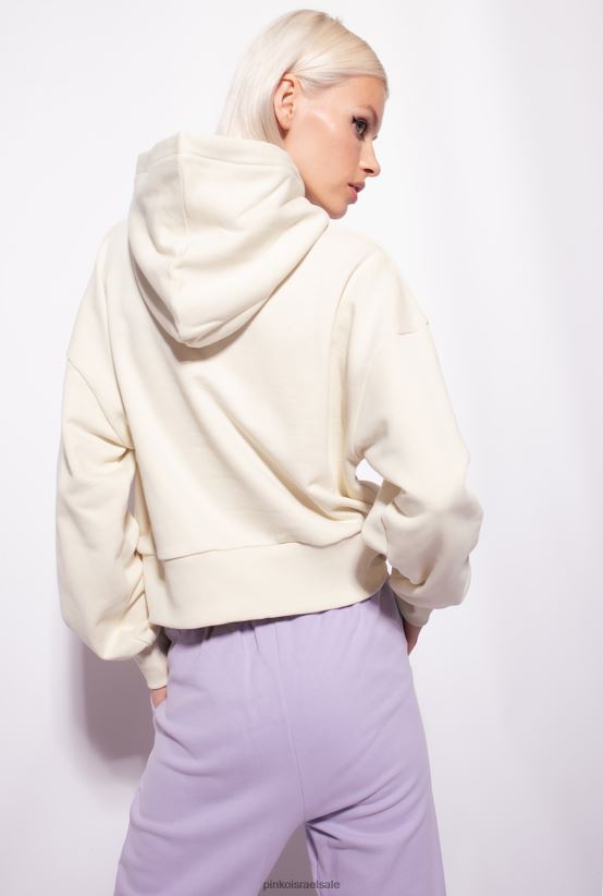 סווטשירט כותנה קצוץ עם הדפס מיני לוגו של ציפורי אהבה, בשכבות על ידי כיתוב פינקו בחזית השמאלית. צוואר עם קפוצ'ון שרוך ושרוולים ארוכים ונמוכים עם חפתים. - הדגם בגובה 175 ס"מ ולובש מידה 40.