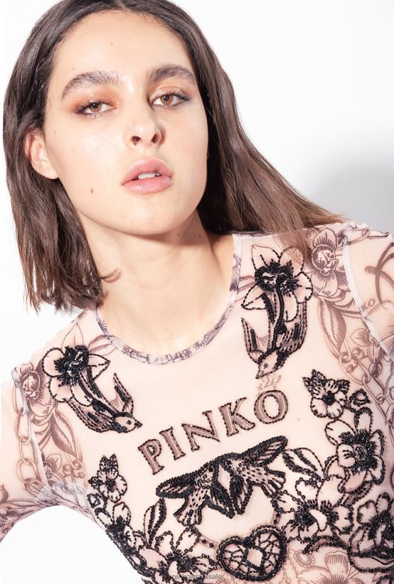 סרבלים ומכנסיים | Pinkoעירום/שחור סרבל עם הדפס קעקוע עם רקמה 4J84TD115