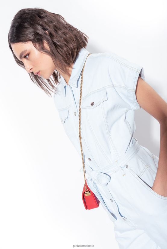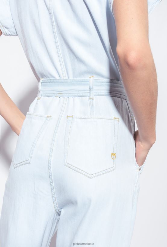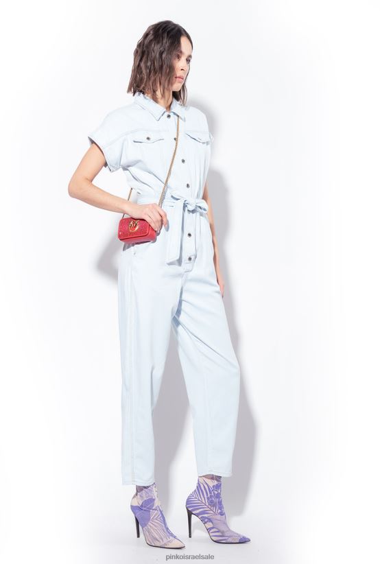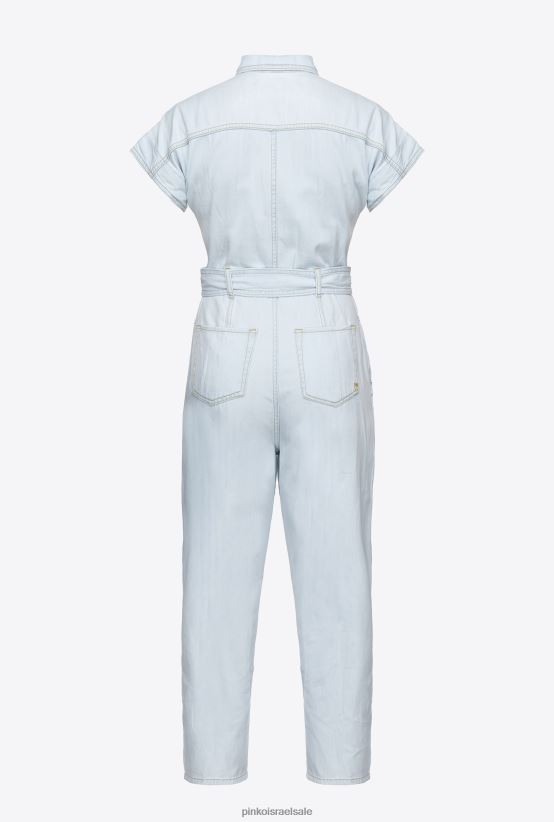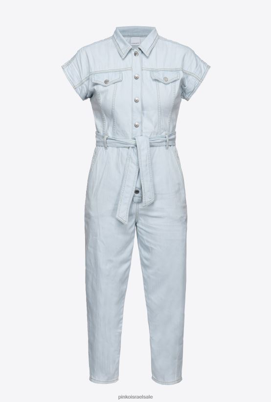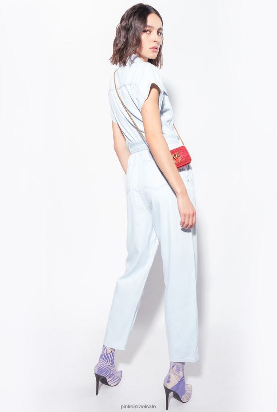 סרבל עם שרוולים קצרים בג'ינס קל משקל ושטוף קל. צווארון מחודד, כיסי דש על המחוך, ומכנסיים בהתאמה לגזר עם כיסי צד מלוכסנים וכיסי תיקון בגב. מהודקים בכפתורי מתכת בהתאמה אישית עם הלוגו של פינקו וחגורת מותניים מבד תואם.
